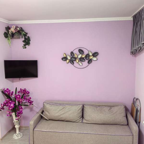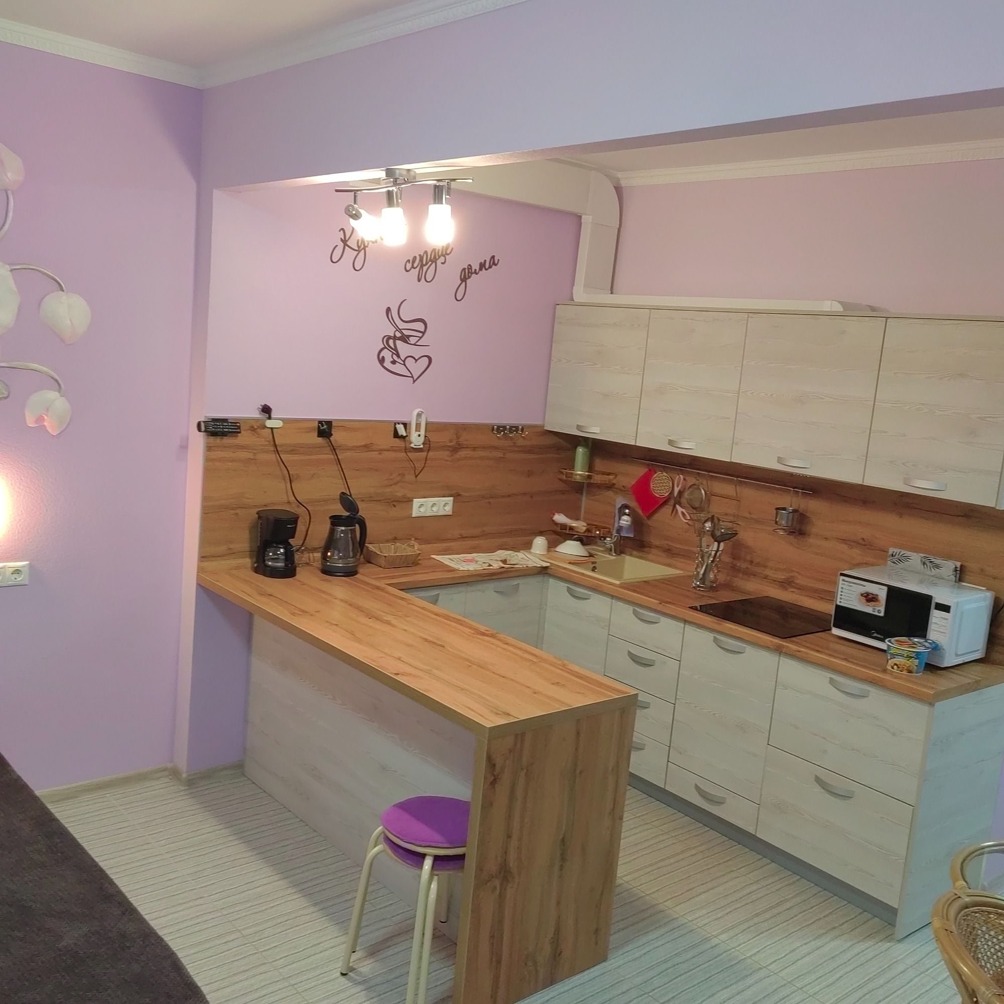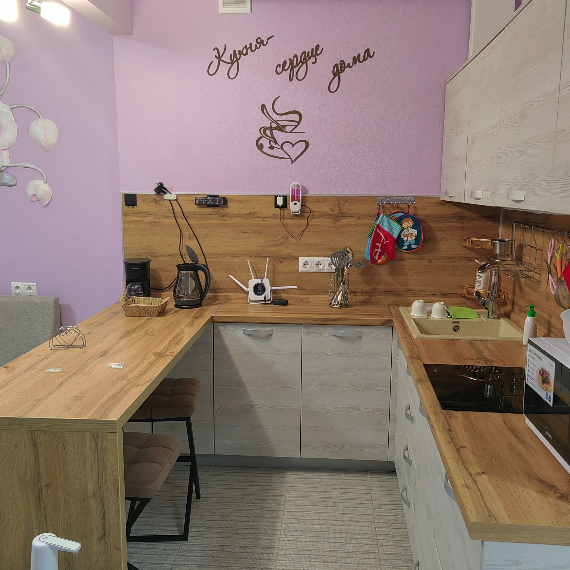 Во всех апартаментах есть все необходимое для комфортного отдыха и проживания: 1 диван на 2 спальных места, кровать на 2 человека, матрас с ортопедическим основанием, вместительный шкаф-купе. Кухня полностью укомплектована для полноценного приготовления и принятия пищи: варочная поверхность (2 конфорки), электрический чайник, СВЧ-печь, кофеварка, вытяжка, вместительный холодильник с морозильной камерой. Вся необходимая посуда.
