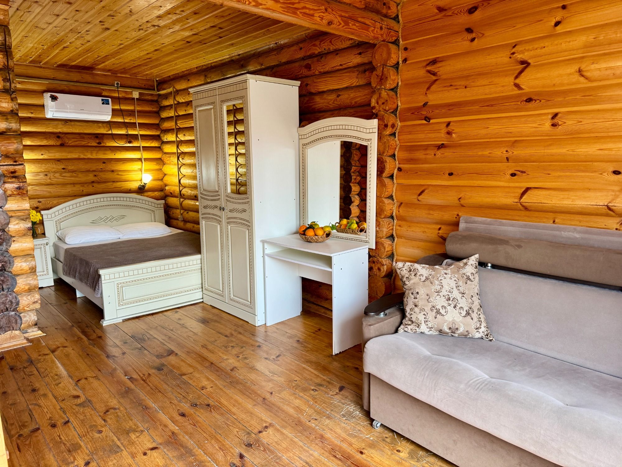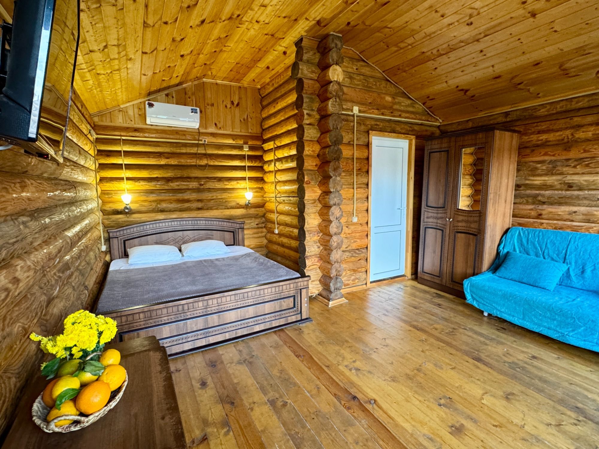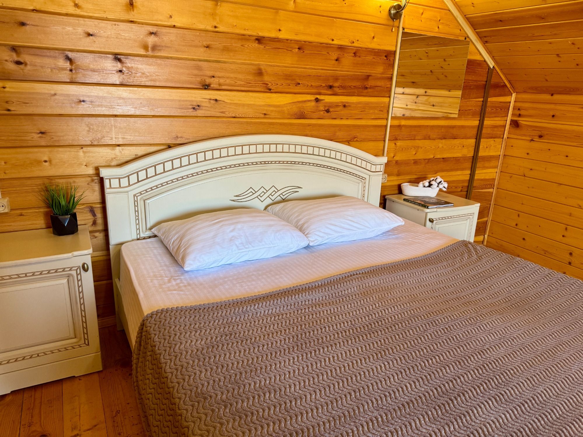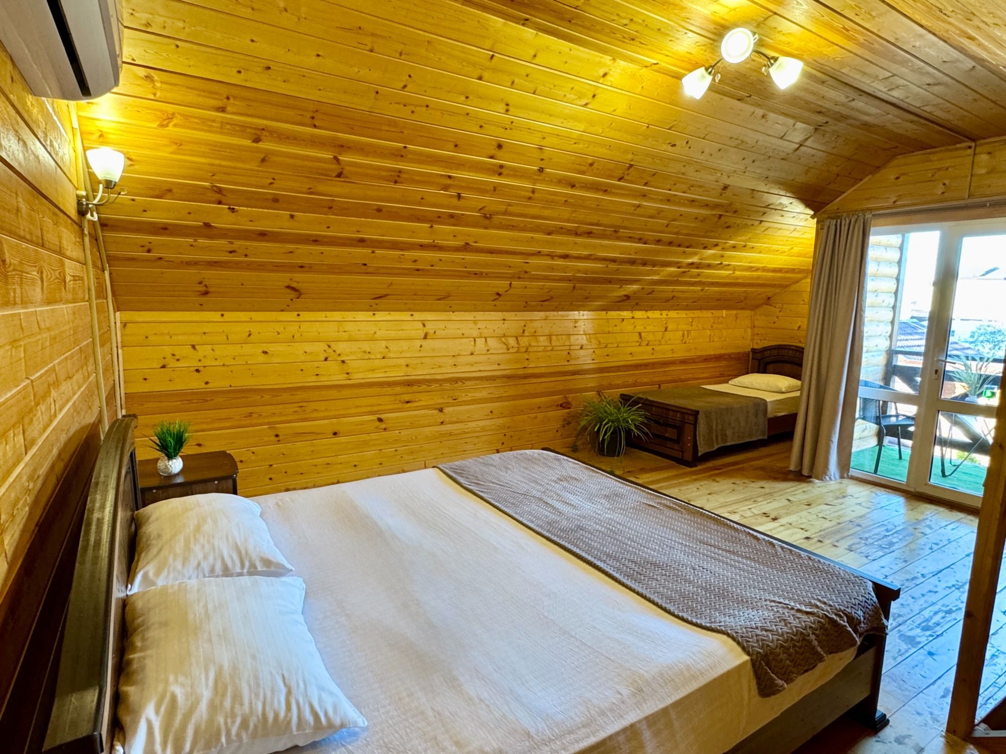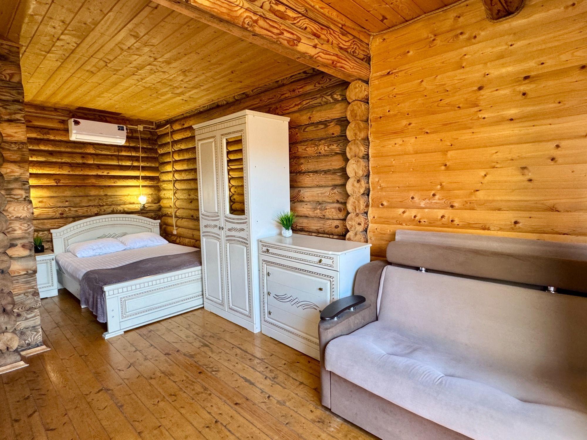 Удобные двуспальная и односпальная кровати, диван.