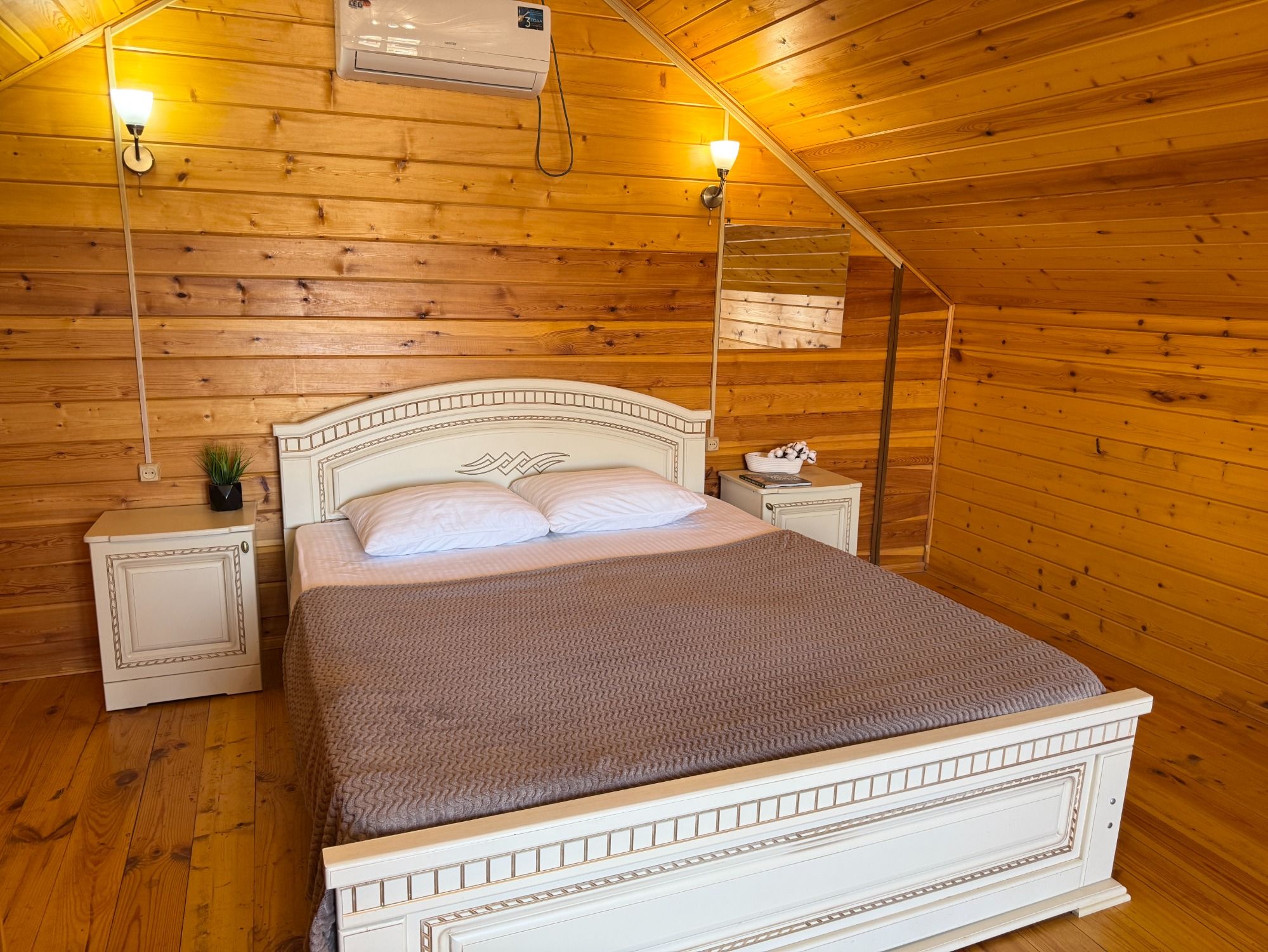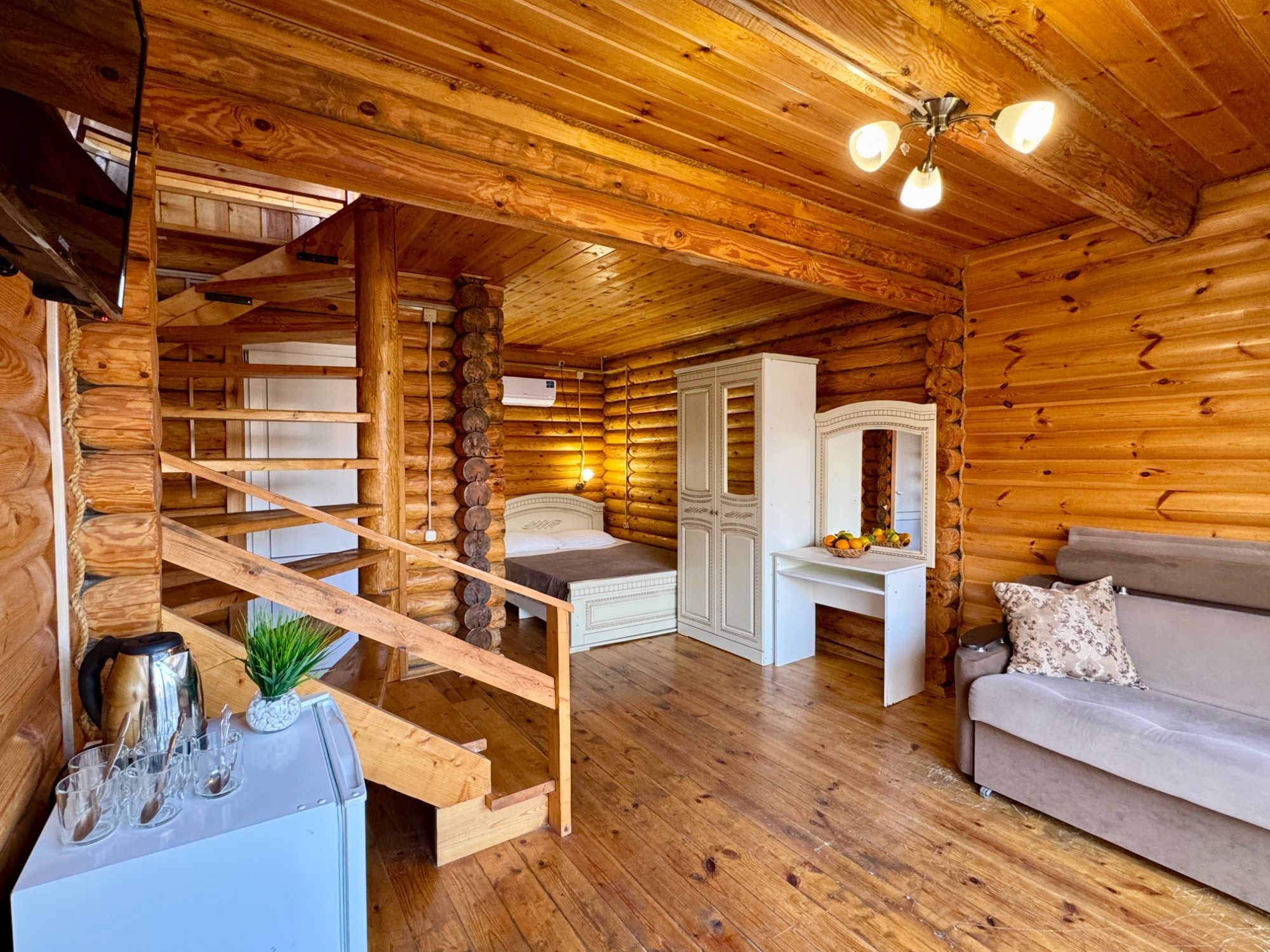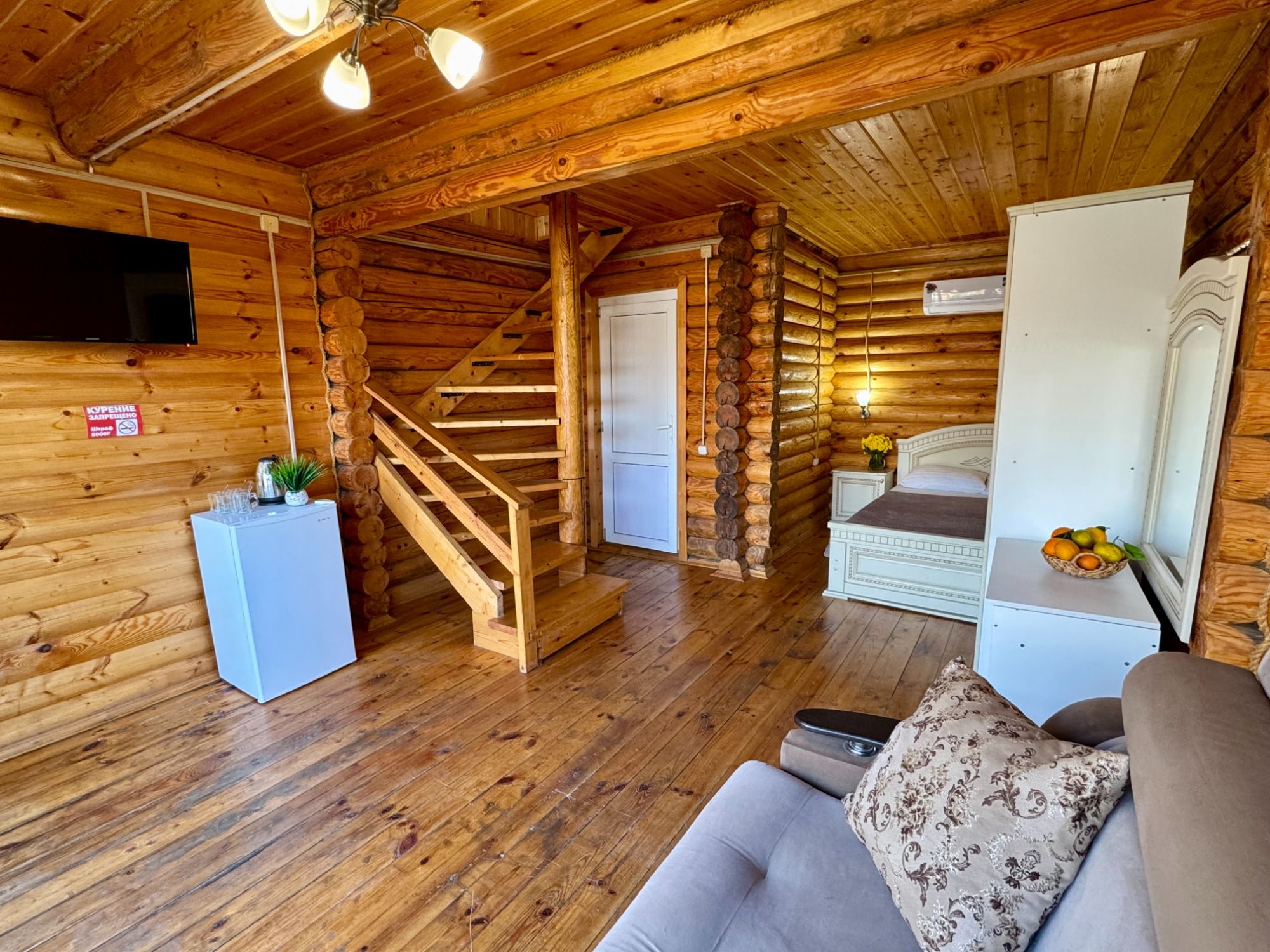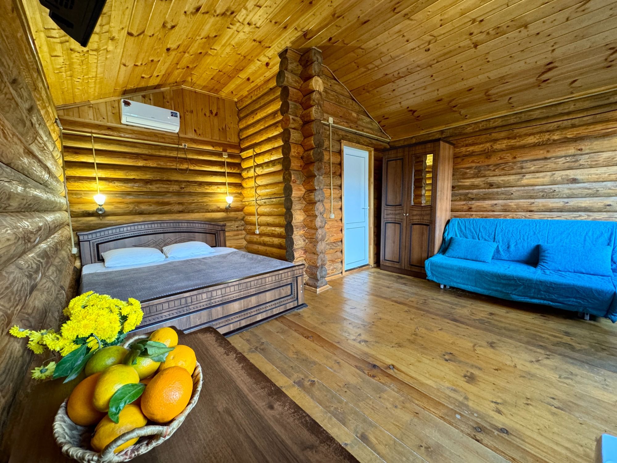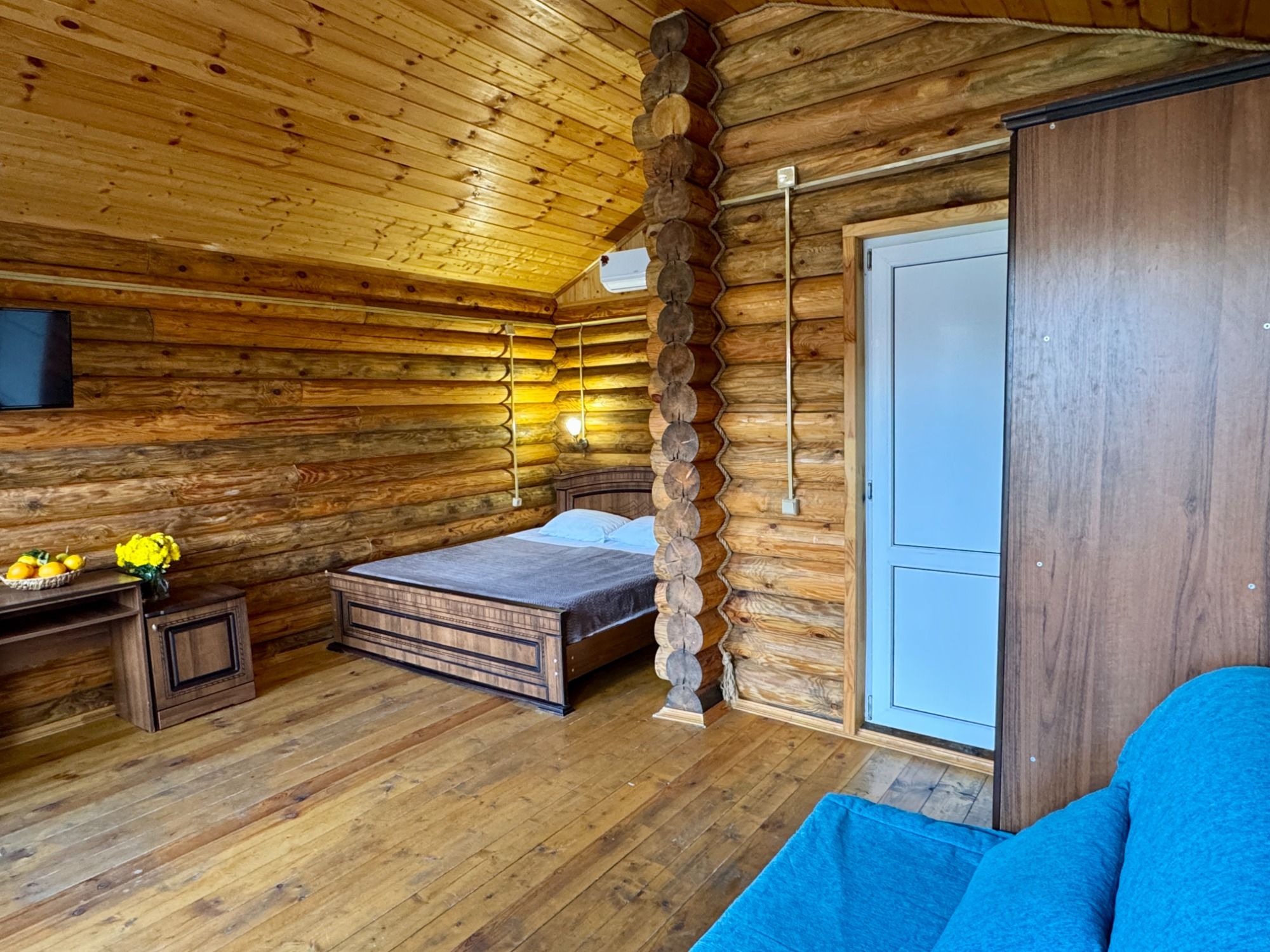 Удобные двуспальная и односпальная кровати, диван.