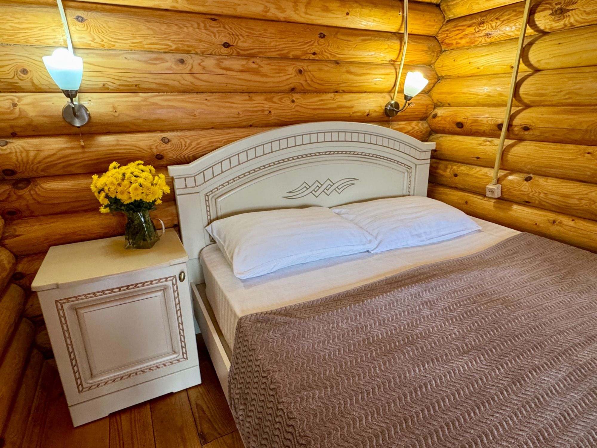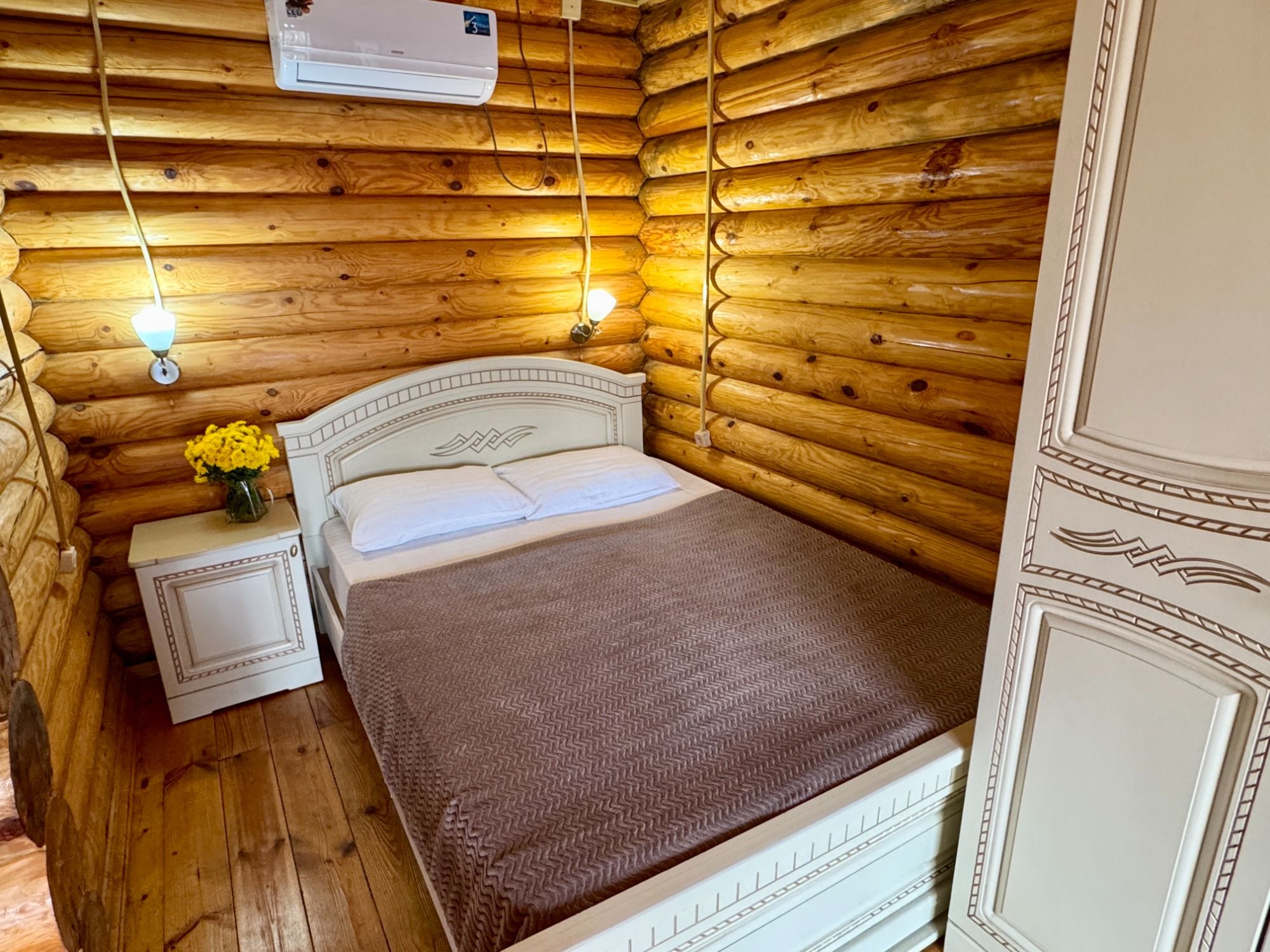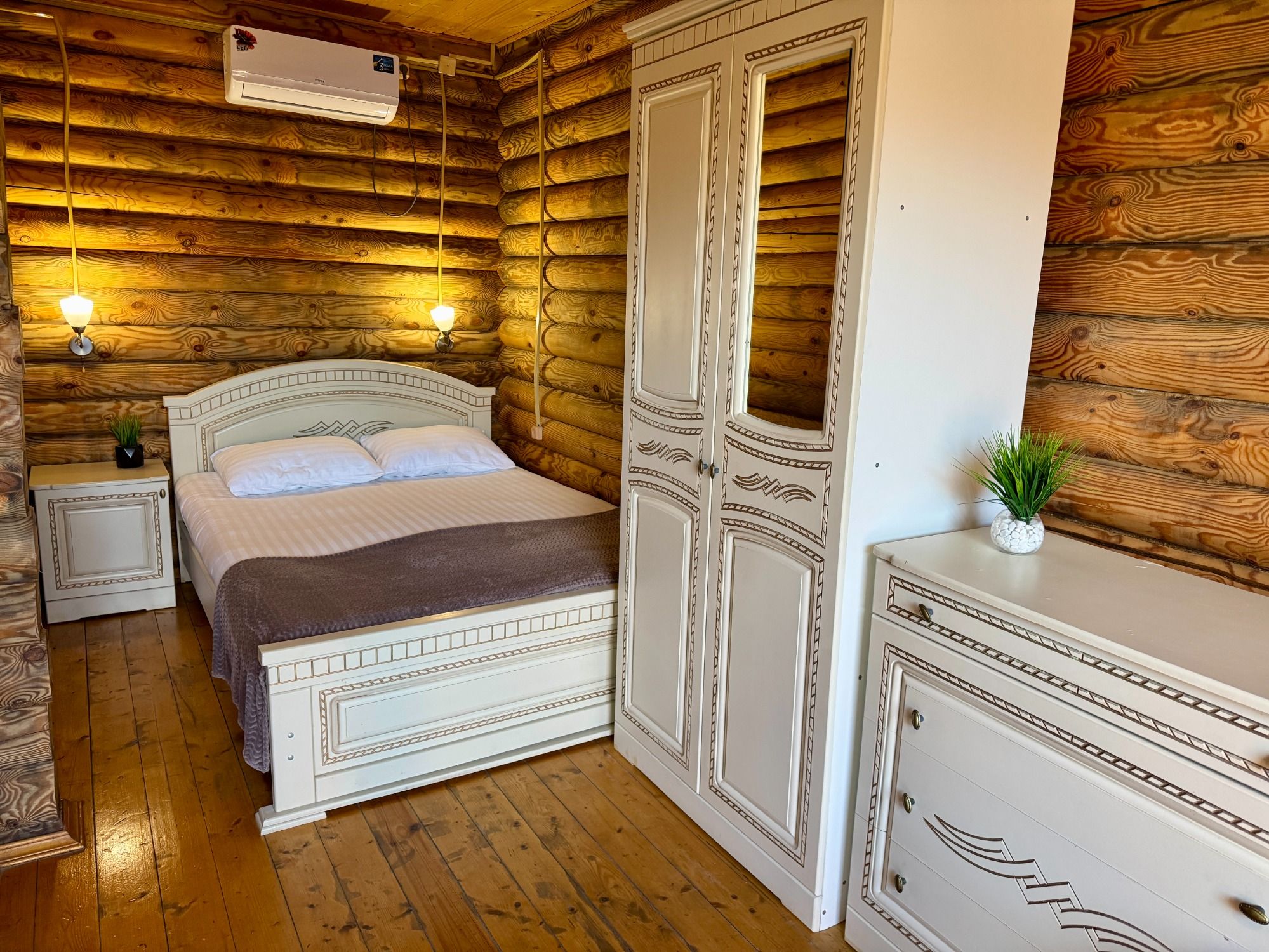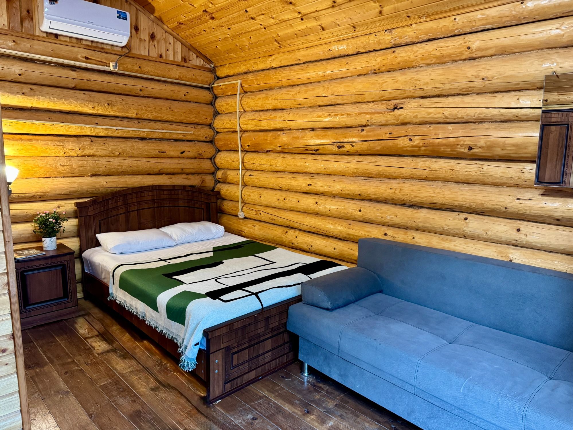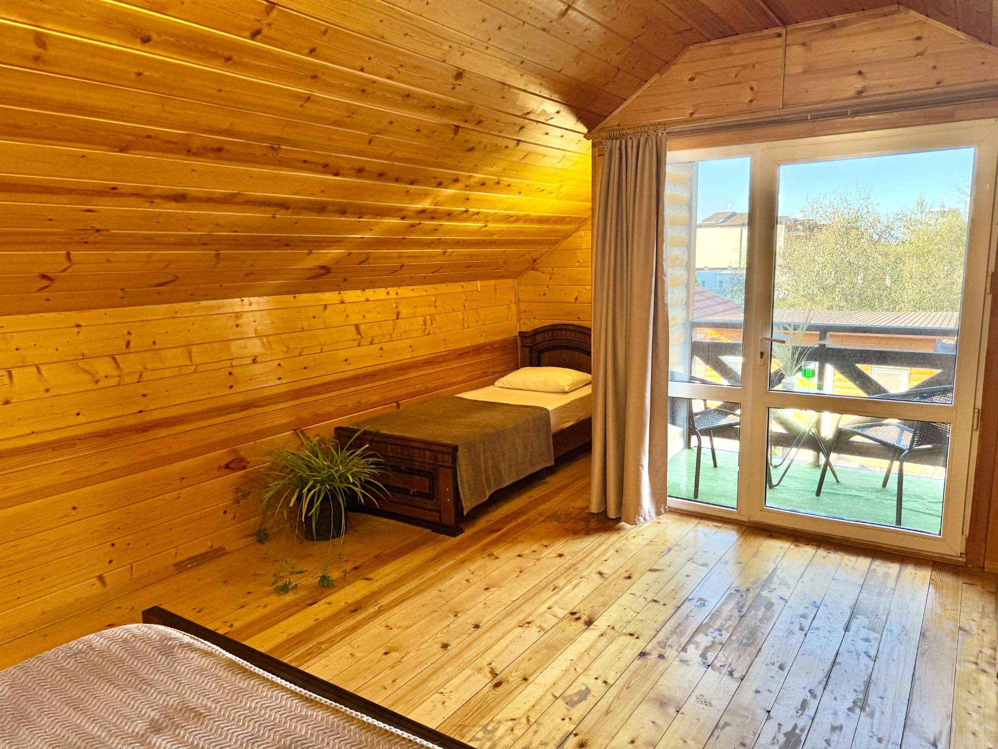 Удобные двуспальная и односпальная кровати, диван.