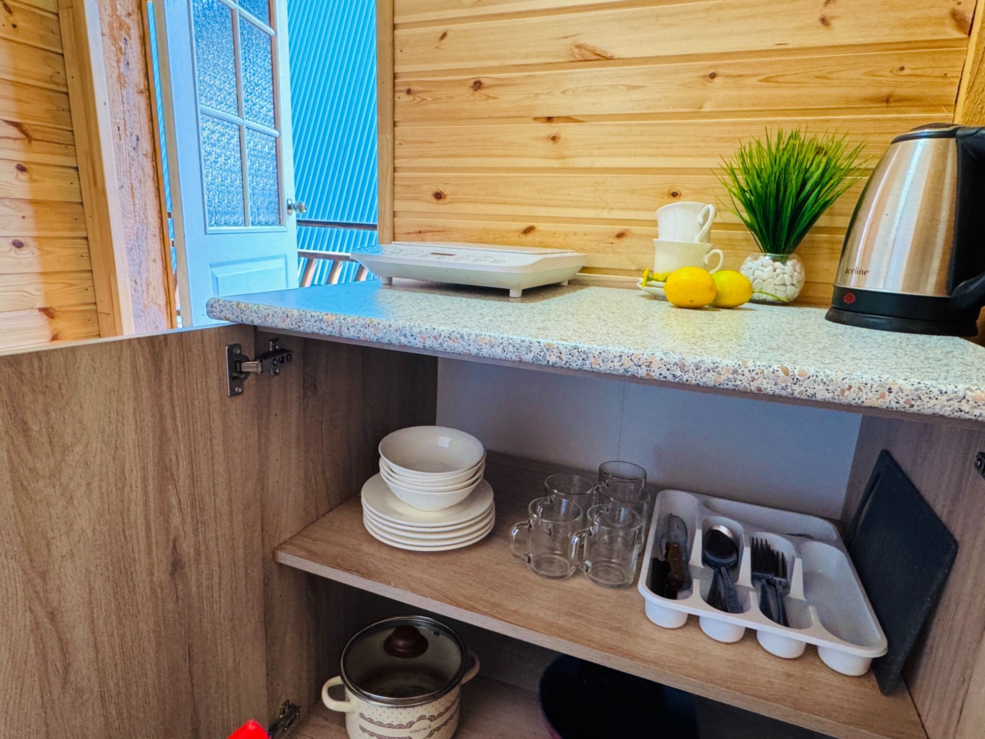 Для проживания Вы можете выбрать наиболее подходящие эко домики, которые у нас разных категорий и разной вместимости, в том числе домики со своими мини-кухнями, террасами и балконами.
