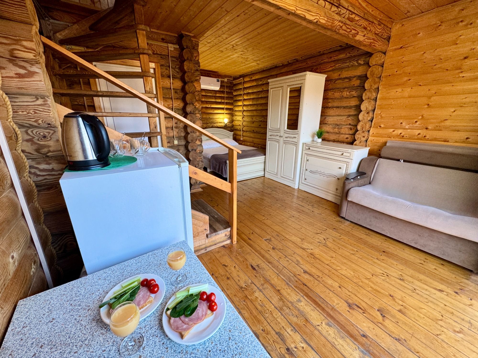 А для проживания Вы можете выбрать наиболее подходящие эко домики, которые у нас разных категорий и разной вместимости, в том числе домики со своими мини-кухнями, террасами и балконами.